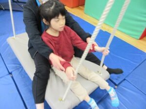 B小学部 体育 Posted on 2025 年 11 月 20 日 by seibiyo01 体育の『いろいろな揺れや動きを感じよう』の授業では、いろいろな揺れ遊具に乗って活動しています。ボールコースターや板ブランコ等に乗って揺れや速さを感じたり、バランスをとったりしてがんばっています。