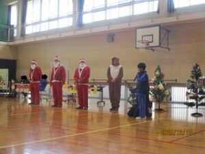クリスマス会 Posted on 2025 年 12 月 26 日 by seibiyo01 サンタクロースが小学部の児童にクリスマスプレゼントを持って来てくれました。 児童はサンタクロースと一緒に歌を歌ったり、ゲームをしたりして楽しく活動することができました。毎年協力して頂いております笠岡東ライオンズの皆様ありがとうございました。