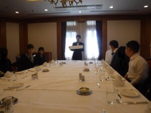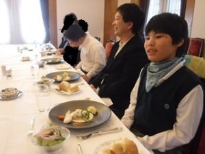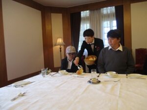 A中2年 校外学習(その1) テーブルマナー学習 Posted on 2025 年 10 月 28 日 by seibiyo01 10月23日(木)~10月24日(金)に校外学習を行いました。 10月23日(木)午前は、倉敷国際ホテルでテーブルマナー学習をしました。事前に学校でフォークやナイフを使い洋食を食べる学習に取り組んだことで、ホテルでは、職員の方の話をよく聞き、真剣に学習に取り組めました。