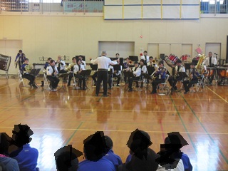 芸術鑑賞会 岡山県警察音楽隊による演奏 Posted on 2025 年 11 月 25 日 by seibiyo01 岡山県警察音楽隊のみなさんに来校していただき、音楽鑑賞をしました。迫力ある演奏を児童生徒は楽しんで鑑賞しました。また、笠岡警察署交通課と笠岡市役所の交通指導員の方の協力により交通安全教室も行いました。横断歩道の渡り方や自転車の安全な乗り方を指導していただきました。