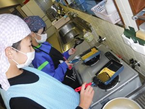 同じチームの人と協力して、晩ご飯作りに取り組みます。