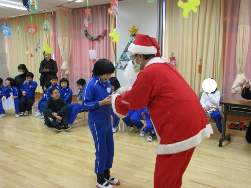 一番の盛り上がりは子どもたちもわくわくのサンタさんからのプレゼント贈呈。