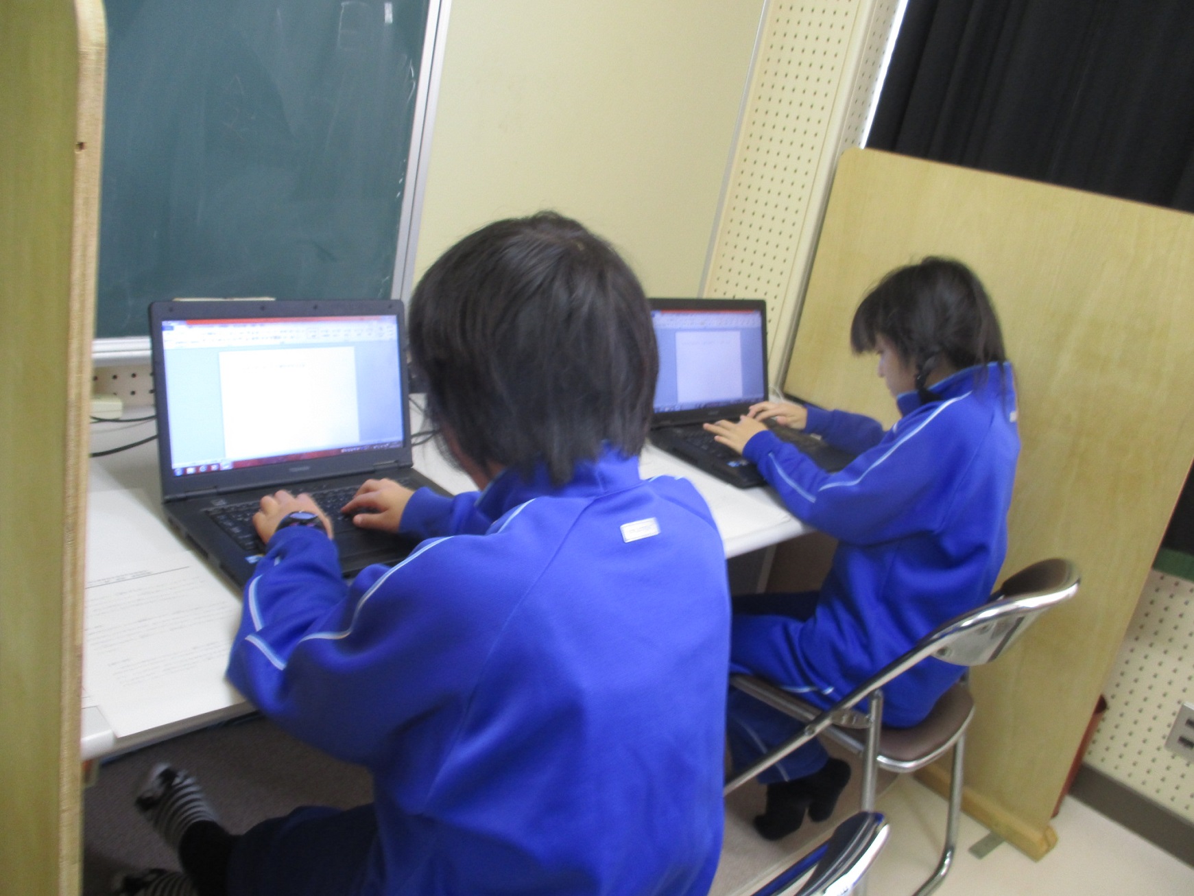 12月4日(火)に、パソコン検定がありました。A中学部では、4人の生徒が受験しました。一文字ずつ慎重に入力していました。