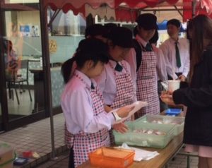 当日はあいにくと小雨混じりでしたが、自分たちの作った商品を買っていただくという貴重な経験ができました。最初はなかなか大きな声の出なかった生徒たちも、少しずつ「いらっしゃいませ!」「ありがとうございます!」と声を張れるようになっていました。