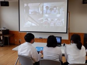 今年度の笠岡商業高校との交流学習は、新型コロナウィルス感染症予防のためオンラインで行います。そのため、打ち合わせもお互いの代表がオンラインで行いました。最初は、初対面であること、外部の人とオンラインで話し合いをするのが初めてであることもあり、互いに緊張していましたが、話し合いが進むにつれてだんだんと慣れてきて、〇×ゲームの内容やカードのデザインを話し合う場面では、積極的に意見交換ができました。打ち合わせの後、お互いの学校のことや趣味について語り合うなどオンラインでもしっかり交流できる自信がつきました。交流学習本番では、今日のメンバーが中心になってリードしながら、お互いが理解し合い、親交を深めたいと思います。