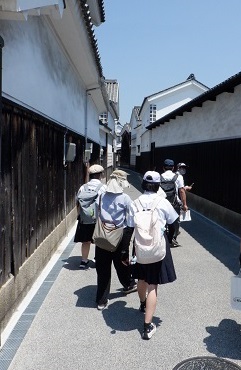 2日目は倉敷市の美観地区でグループ別自主活動を行いました。手ぬぐい染め体験やキャンドルづくり体験をし、事前学習で友達と相談した計画に沿って昼食を食べたりお土産物屋さんを巡ったりすることができました。