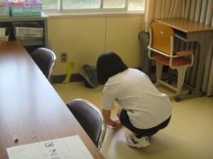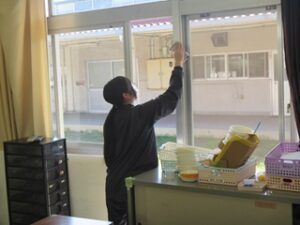 笠岡高校ボランティア部の活動 その2 Posted on 2025 年 10 月 15 日 by seibiyo01 9月30日(火)、笠岡高校ボランティア部の生徒のみなさんが、本校A部門小学部・中学部に学校支援ボランティアとして来校し、教育活動に協力してくれました。 写真は校内清掃・教材作成の様子です。普段の清掃では行き届かない箇所を清掃してくれました。 また、教員の仕事体験として、教材作成にも取り組んでもらいました。