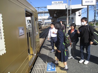 A中2年 校外学習(その5) ローカル鉄道とバスの旅(公共交通機関の利用)、レストランでの学習 Posted on 2025 年 11 月 4 日 by seibiyo01 10月23日(木)~10月24日(金)に校外学習を行いました。 24日(金)は地域のローカル鉄道である井原鉄道に乗り、清音駅~井原駅までローカル鉄道の旅を楽しみました。 井原駅では、昼食を仲間と楽しく食べ、切符の購入や昼食の支払いの学習もできました。井原駅から学校までは井笠バスに乗車しました。