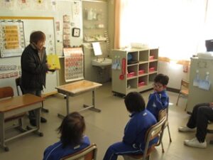 A小学部 読み聞かせ Posted on 2026 年 3 月 19 日 by seibiyo01 笠岡音訳の会の皆さんが今年度最後の絵本の読み聞かせにA小学部へ来校してくださいました。。 今年度は、月1回の頻度で教育活動に協力していただきました。地域の方のご協力で児童は絵本の読 み聞かせを楽しんで学習することができました。