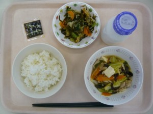 5月14日(水)~16日(金)献立 Posted on 2014 年 5 月 16 日 by seibi10 パン 牛乳 チリコンカン にんじんサラダ ヨーグルト チリコンカンは、豆いっぱいの料理でした。 ごはん 牛乳 野菜と豆腐の炒め煮 はりはり和え のり佃煮 のり佃煮は、大人気! ごはん 牛乳 紅鮭チーズフライ ビーフンソテー 豆腐のみそ汁 ビーフンと一緒だと、野菜も食べやすかったです!