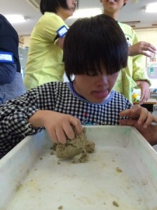 A中学部 美術 Posted on 2014 年 9 月 16 日 by seibi10 2学期に入ってからの美術は、どのグループも粘土作りをしています。 最初は真っ白でふわふわの紙ですが・・・ 水、のり、そして魔法の粉を混ぜて、しっかりこねると、粘土ができます! この粘土を使って、A中学部全体で、あるものを作っています。 だいぶ形になってきました! 何を作っているか、分かるでしょうか? 完成したものが、運動会で登場する予定です! お楽しみに♪♪