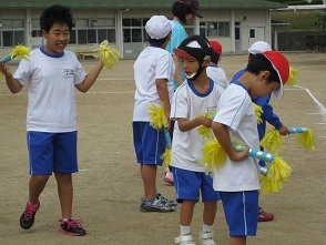 A小学部の演技以外にも、玉入れや西備音頭等、全体の演技も頑張っていますよ。